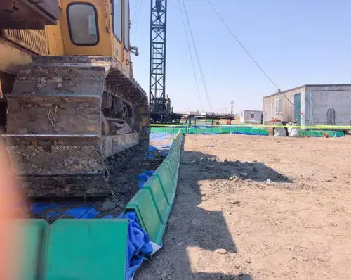 环保围坝是用特殊材料压铸制成的临时性维护结构,可根据使用面积的大小自由组合和重复利用,因外形设计美观、合理,取代了传统的土质围坝,不但减少井场原油污染,而且节约土地资源,提高工作效率,尤其是在雨季、冬季及沙地作业时,更加方便实用,是野外作业的理想产品。